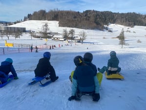 Gemeinsamer Schlittelausflug vom Kinderhaus bis zur Sekundarstufe nach Bäretswil.